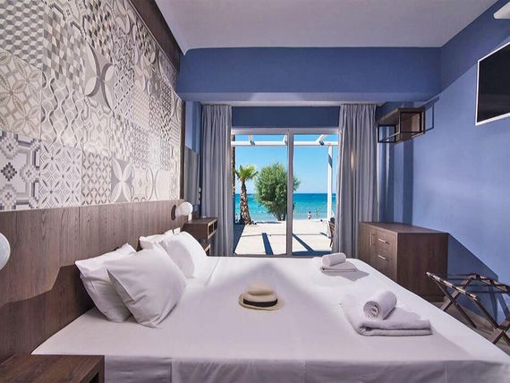 Pokoje Double Beach Front; pokoje od strony plaży, ok. 17/20 m2, klimatyzacja (sezonowa), TV-SAT, telefon, sejf (płatny), czajnik, mini lodówka, łazienka (WC, prysznic), suszarka, balkon/taras