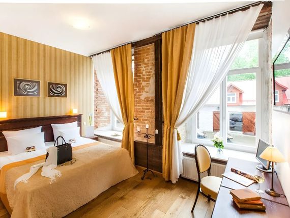 Kameralny, butikowy hotel niedaleko centrum Tallinna, jest doskonałą propozycją dla tych, którzy chcą spokojnie wypocząć i jednocześnie mieć łatwy dostęp do największych atrakcji miasta – spacerem można dotrzeć stąd na starówkę, do lokalnych restauracji oraz najważniejszych zabytków estońskiej stolicy. Usytuowany w odrestaurowanym, XIX-wiecznym budynku, zachwyca eleganckimi, urządzonymi w rustykalnym stylu wnętrzami, w których królują ceglane ściany, drewno i stonowane kolory. Po dniu pełnym wrażeń odpocznij w przytulnym i komfortowym pokoju, zrelaksuj się w kameralnym spa z jacuzzi, sauną fińską i łaźnią parową i zjedz kolację na tarasie z widokiem na urokliwy dziedziniec. To wyjątkowe miejsce z duszą, idealne na romantyczny wyjazd lub spokojny city break.